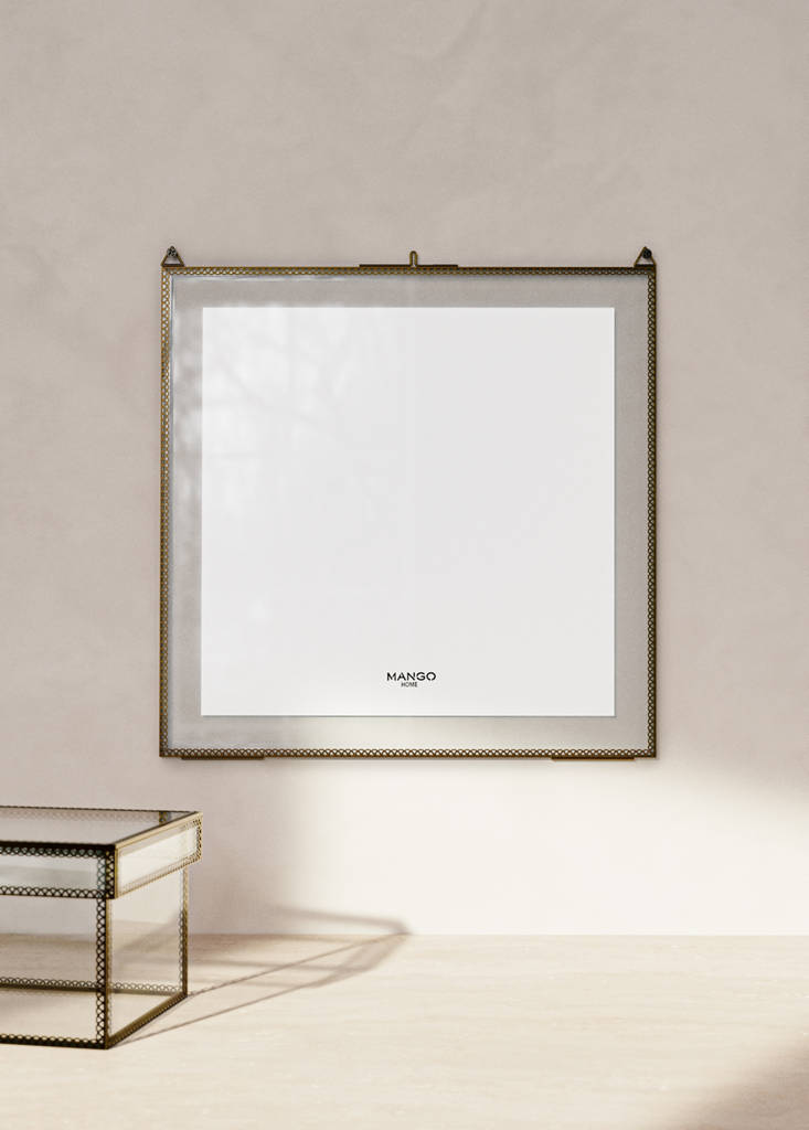Storlek: 30x30x0,6. För foton på 25x25 cm. Transparent glas. Inkluderar fäste för upphängning upptill. Kant i guldmetall. Finns i två storlekar. Kombinera med fler produkter från kollektionen