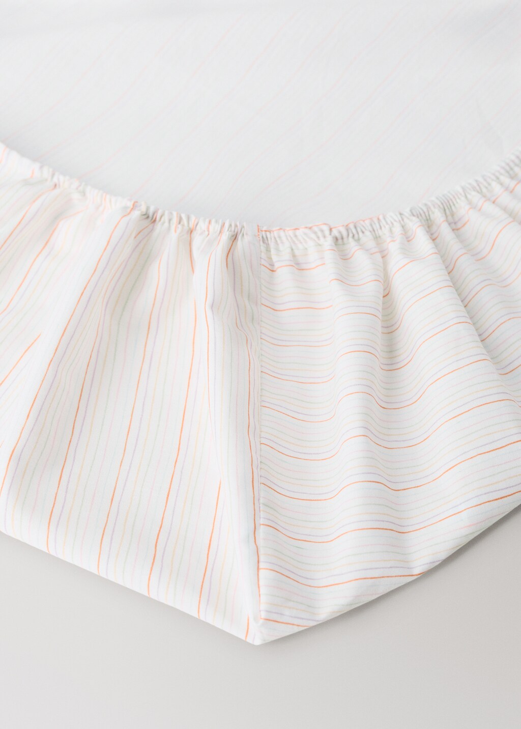 100% Bomull. Storlek: 90x200x30cm. 90 cm säng. Design med tunna ränder. Percale bomull 200 trådar. Percale-bomull ger en fräsch känsla och är mjuk vid beröring. Matchar med fler produkter från kollektionen.