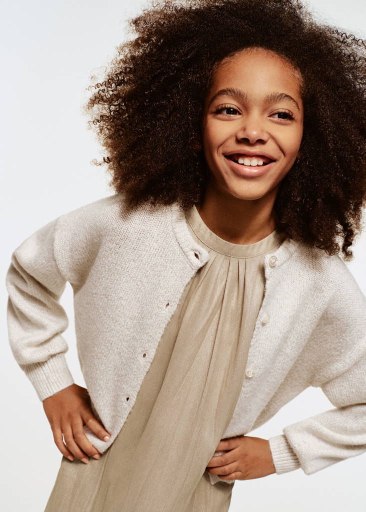 Knitted cardigan with shiny detailsCurrent price [S$ 69.00 ]S$ 69.00Select a colourEcruSelect your size5-6 years (116cm)Not available. I want it!7-8 years (128cm)Not available. I want it!9-10 years (140cm)Not available. I want it!11-12 years (152cm)Not available. I want it!13-14 years (164cm)Not available. I want it!DimensionsNotify meAdd to WishlistSee lookFree delivery to storeLurex fabric. Knitted fabric. Brilliant design. Round neck. Long sleeves. Front closure with buttons. Ribbed collar, cuffs and hem. Party and events collection. Christmas CollectionDetails, composition and careStore availability