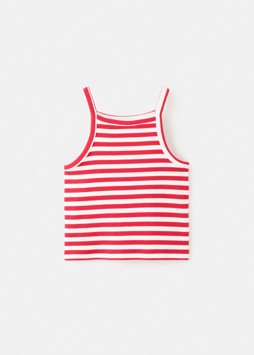 Cotton fabric. Ribbed knit. Stripe design. Thin straps. Total look.