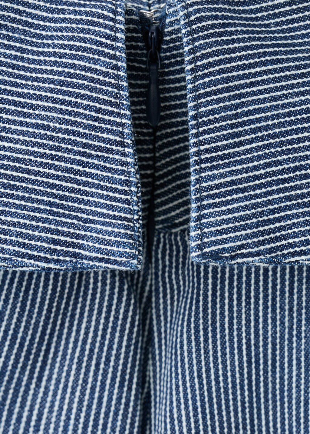 Denim-style cotton fabric. Long design. Wide-leg design. Striped print. Regular Waist. Folded waist. Side zip closure. Total look.