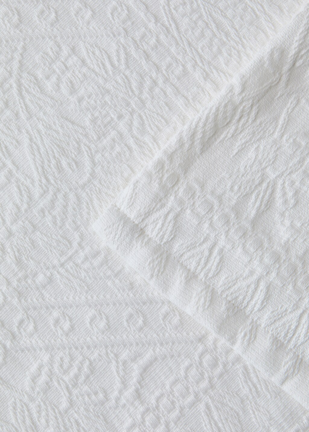 100% Cotton. Size: 280x270 cm. Made in Portugal. 300 thread count. Hem: 2 cm. Bedspread with jacquard design and mosaic texture in romantic style. Coordinates with its matching cushion cover.