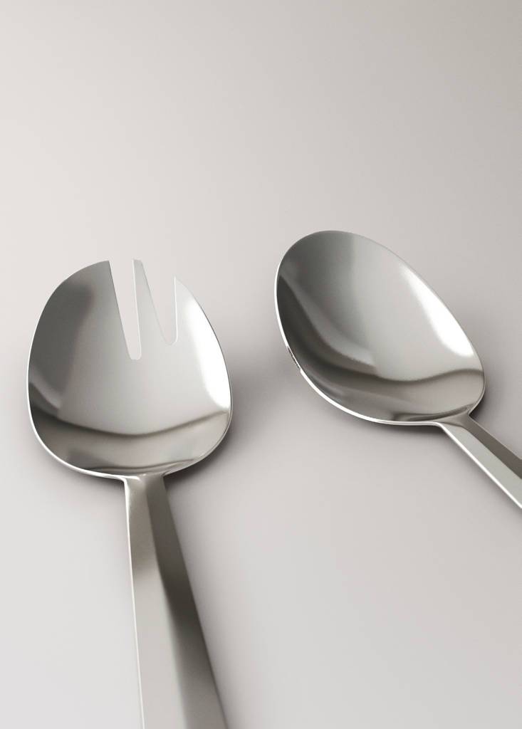 100% stainless steel. Length: 19.5 cm. Set of 2 serving cutlery. Bright silver finish. High-quality and durable materials. Online Exclusive