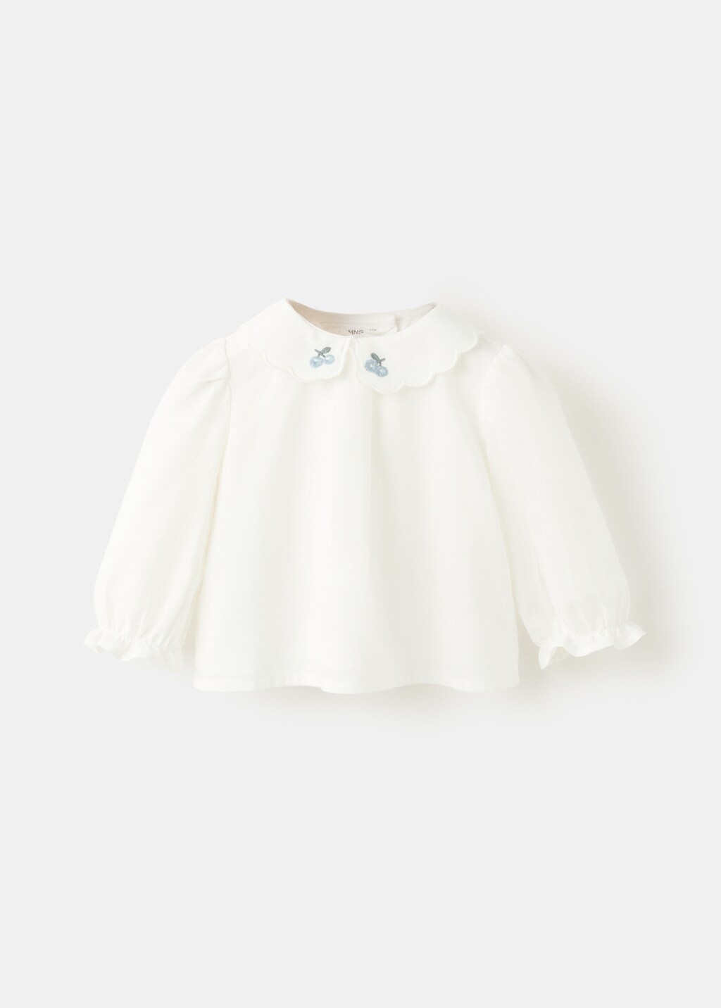 100% cotton fabric. Straight Design. Peter Pan collar. Long sleeves with elastic cuffs. Embroidered details. Scalloped edges. Button fastening on the back section.