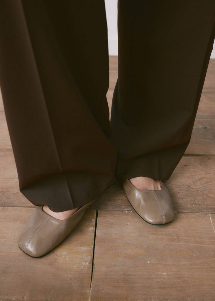 100% sheepskin. Flat. Round toe. Inner lining. Online Exclusive