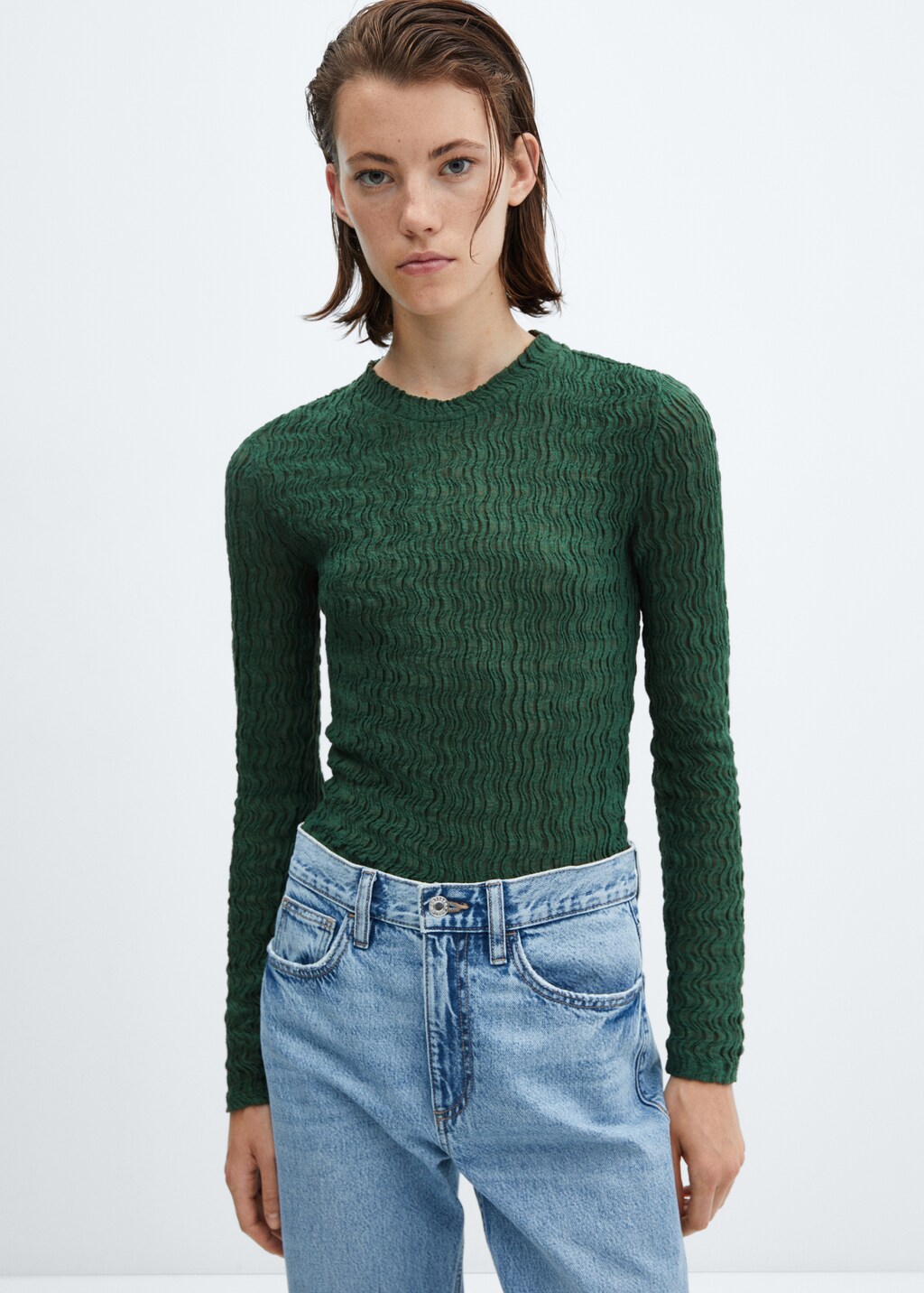 Add to your wishlistGathered knitted t-shirtCurrent price [€ 22,99 ]€ 22,99Select a colourGreenSelect your sizeXXSNot available. I want it!XSNot available. I want it!SNot available. I want it!MNot available. I want it!LNot available. I want it!XLNot available. I want it!XXLNot available. I want it!Size guideNotify meAdd to WishlistGet the lookFree delivery to storeSee availability in storeDescriptionFine knit fabric. Gathered fabric. Elastic. Tailored design. Rounded neck. Long sleeve. Office looks.See detailsShare