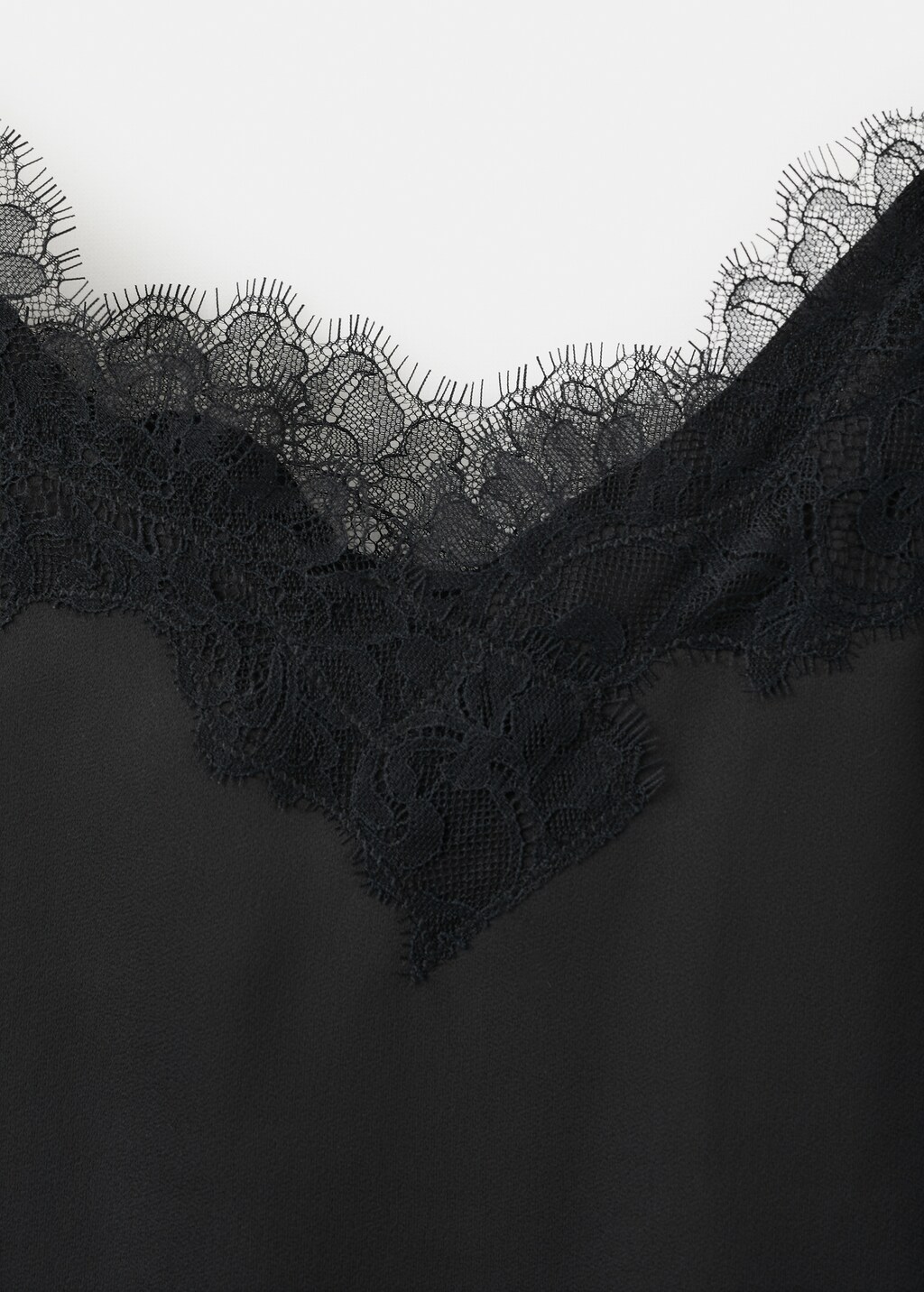 Satin fabric. Asymmetric design. Straight design. V-neckline. Thin straps. Lace trim. No Fastening. This garment is part of our party and event collection, designed to elevate your looks for special occasions.