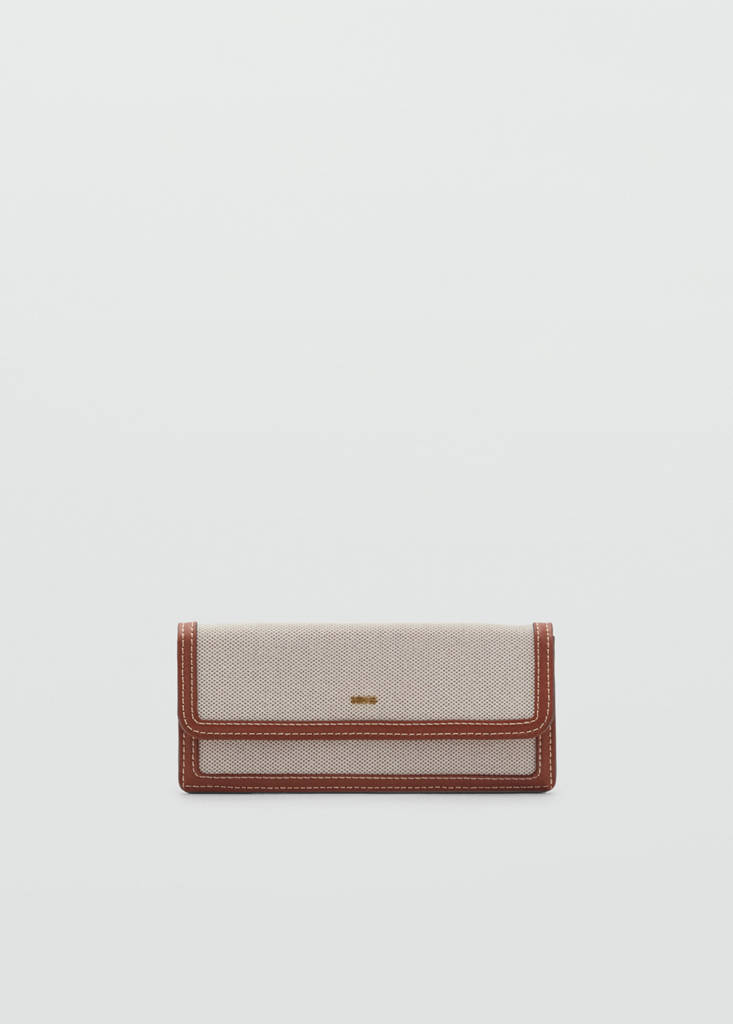 Raffia effect. Large. Rectangular design. Contrast trims. Debossed logo. Inner zipped pocket. Flap closure with snap button. Inner lining