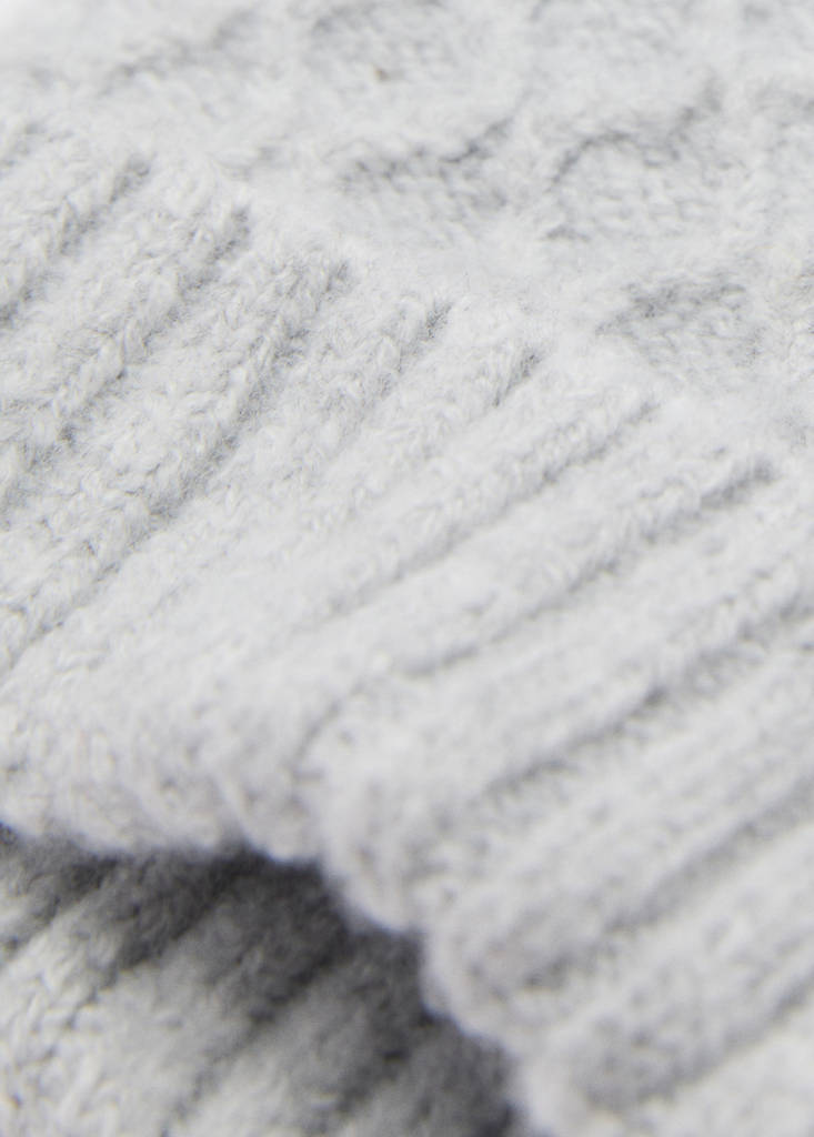 Knitted braided fabric. Ears detail. Strap fastening