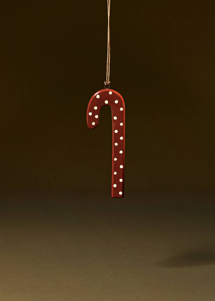 100% wood fibre. Length: 8.2cm. Width: 3.3cm. Set of two candy cane-shaped decorations, made from 100% wood, notable for their festive and minimalist design. Each stick is finished with delicate dot details that mimic icing sugar, evoking the classic Christmas style. Its design exudes warmth and a handcrafted touch, perfect for those looking to add a rustic and traditional style to their Christmas decorations. Christmas Collection