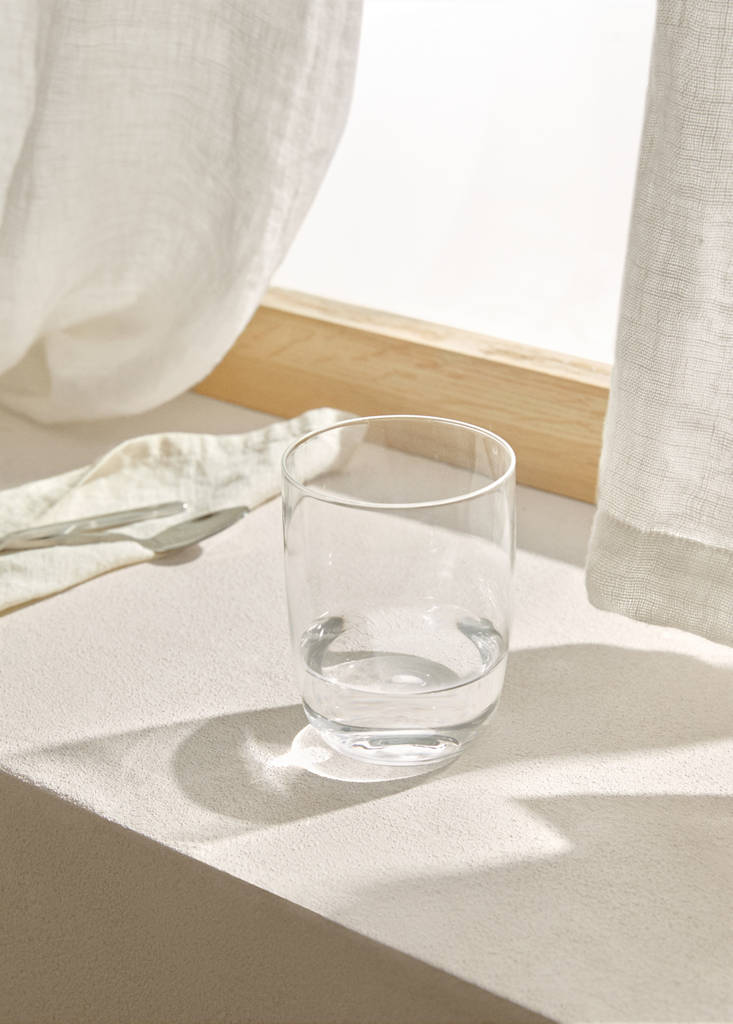 Glassware. Transparent design. Capacity: 450 ml. It may contain liquid. 100% borosilicate glass. Lightweight and resistant material. Elegant and minimalist design, ideal for any table. Sold by unit. It may contain water. Food container. Does not alter taste or aroma. Everyday use or celebrations. Accessory for your home. Kitchen accessories