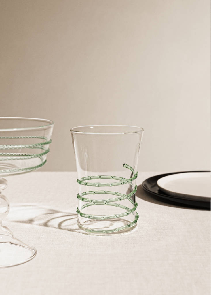 100% borosilicate. Raised dot detail. Transparent design. Adds a touch of simplicity and elegance to your table. Coordinates with more products from the collection