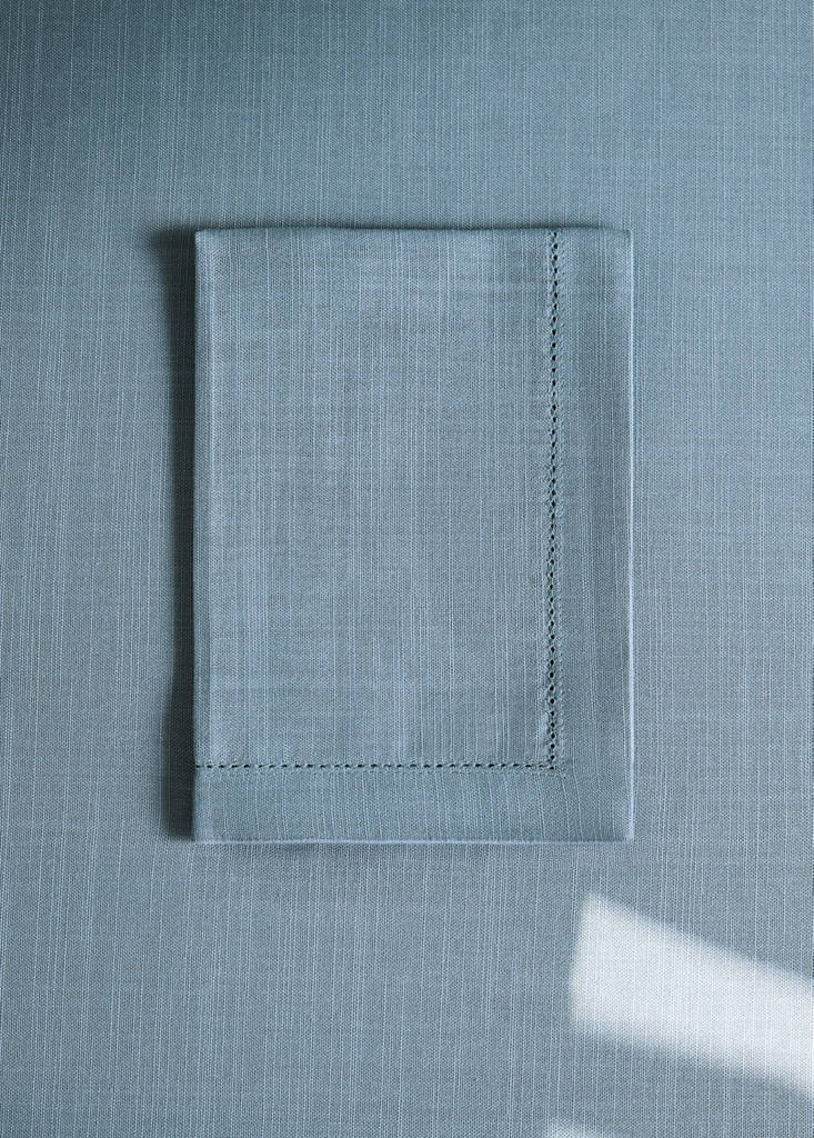 2 PACKCotton napkins with hemstitch detailCurrent price [€ 8,99 ]€ 8,99Select a colourBlueSelect your size45x45cmAddAdd to your wishlistSee lookFree delivery to store100% Cotton. Size: 45x45 cm. Pack of 2. Hemstitch detail. Coordinates with more products from the collectionDetails, composition and careStore availability