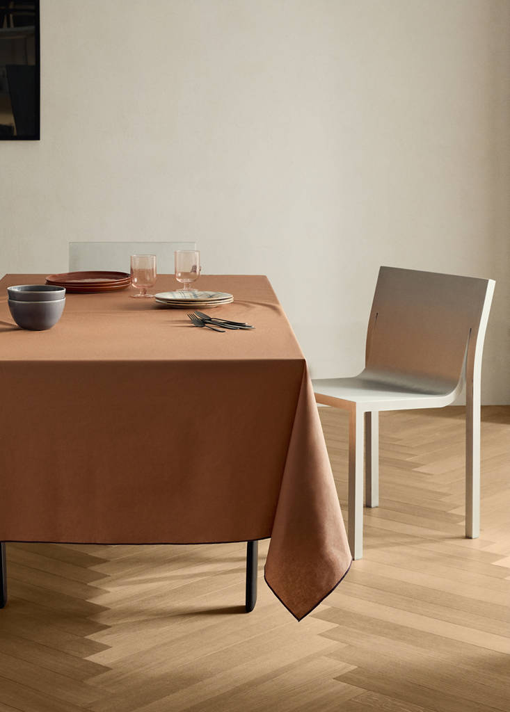 100% Cotton. Resin-coated fabric. Dyed threads. Water Repellent: Technical water-repellent fabric. Size: 150x150cm. Seats 2 to 4 people. Fabric and tailoring made in Spain. Premium quality. Create a sophisticated ambience. Overlock stitching detail to achieve a serged effect. Overlock detail. The best fabrics to set the table and share mealtime with your loved ones. Coordinates with more products from the collection