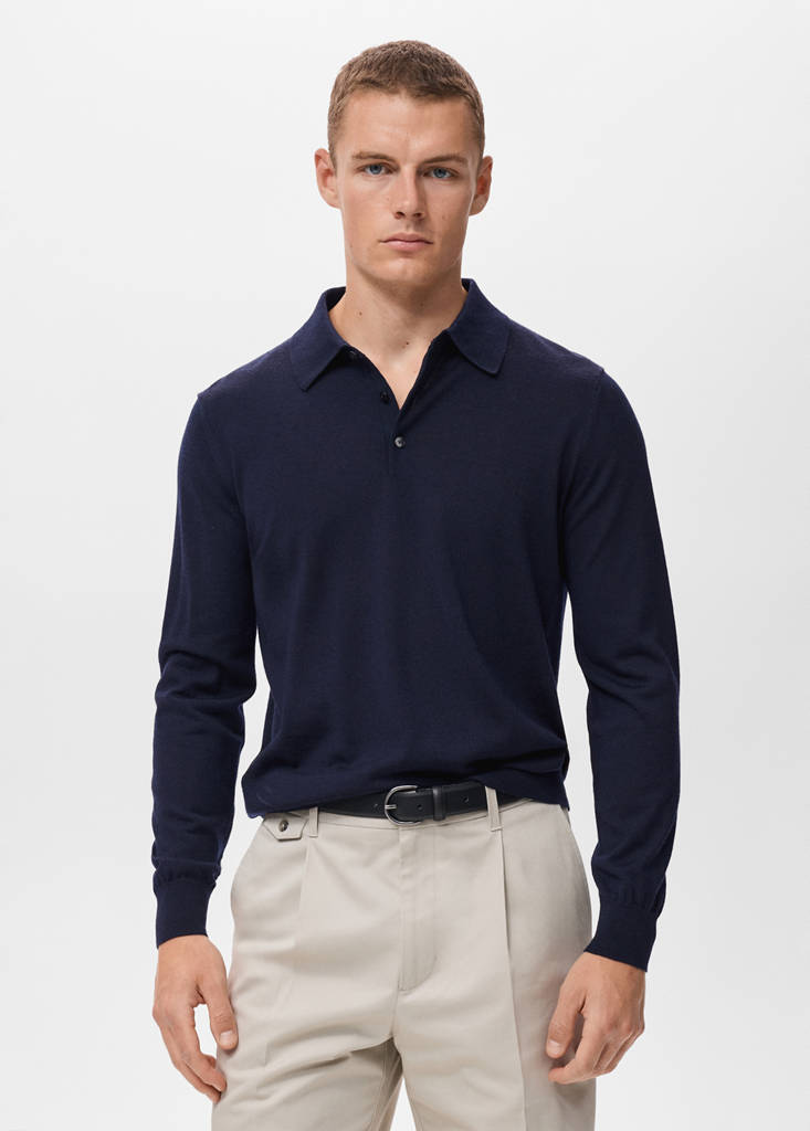 Regular fit. 100% merino wool. Fine knit fabric. Polo-neck with button closure. Long sleeves. Untrimmed sleeves. Elastic cuffs