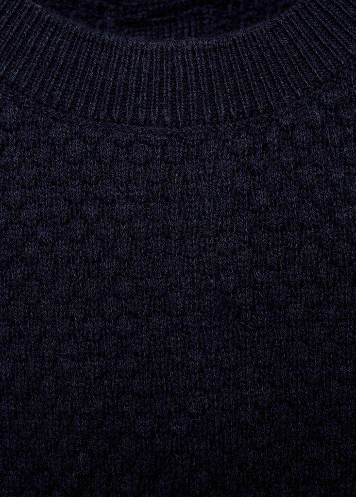 Round neck. Long sleeves. Double side slit at the hem with snap button closure. Press-stud fastening at the back. Knit fabric. Straight design