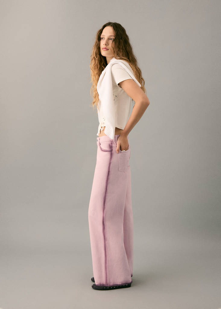 100% cotton fabric. Wide-leg design. Two-tone design. Low Waist Rise. Belt loops. Button and zip fastening. Two side pockets. Two patch pockets at the back