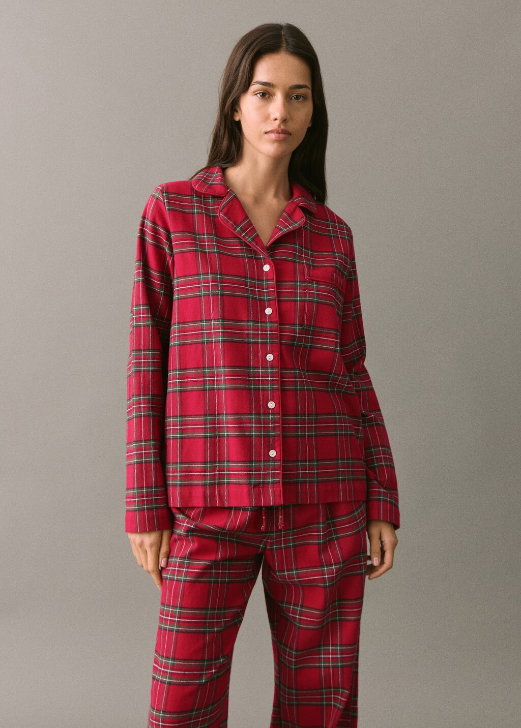 Long pyjama pack. 100% cotton fabric. Long design. Shirt Collar. Front closure with buttons. Long sleeve. Elastic waist with drawstring.
