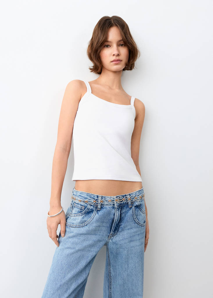 Cotton tank topCurrent price [€ 12,99 ]€ 12,99Select a colourOff WhiteSize change - Consult the Size GuideSelect your sizeXXSXSSMLAddAdd to your wishlistSee lookFree delivery to storeCotton fabric. Straight design. Fitted design. Round neck. Straps. Sleeveless. Built-in cup detailDetails, composition and careStore availabilityItem qualitiesRecycled cottonAt least 20%This fibre is obtained from pre- and post-consumer textile waste that is transformed into new fabrics.