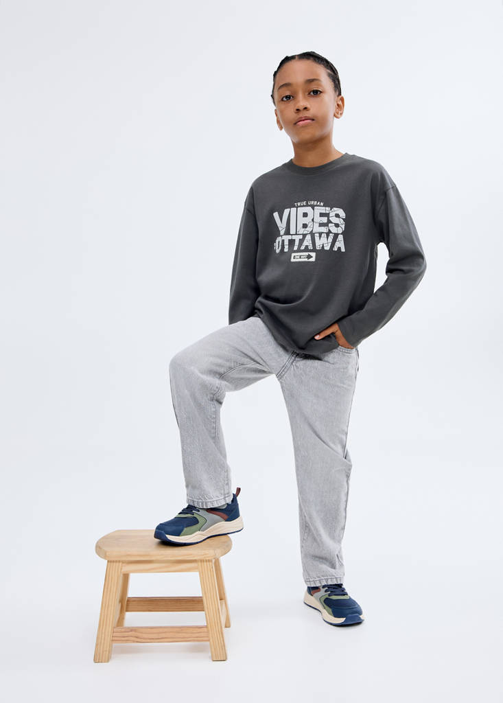 Short-sleeved printed t-shirtCurrent price [8,000 XOF ]8,000 XOFSelect a colourCharcoalSelect your size5-6 years (116cm)Not available. I want it!7-8 years (128cm)Not available. I want it!9-10 years (140cm)Not available. I want it!11-12 years (152cm)Not available. I want it!13-14 years (164cm)Not available. I want it!DimensionsNotify meAdd to WishlistSee lookFree delivery to store100% cotton fabric. Straight design. Printed design. Text stamped on the front. Round neck. Long sleevesDetails, composition and careStore availabilityItem qualitiesRecycled cottonAt least 20%This fibre is obtained from pre- and post-consumer textile waste that is transformed into new fabrics.