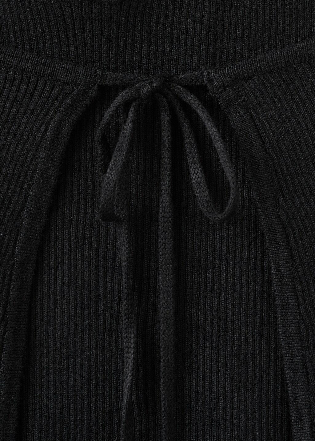Ribbed knit. Halter neck. Thin straps. Bow fastening on the back. Open back.