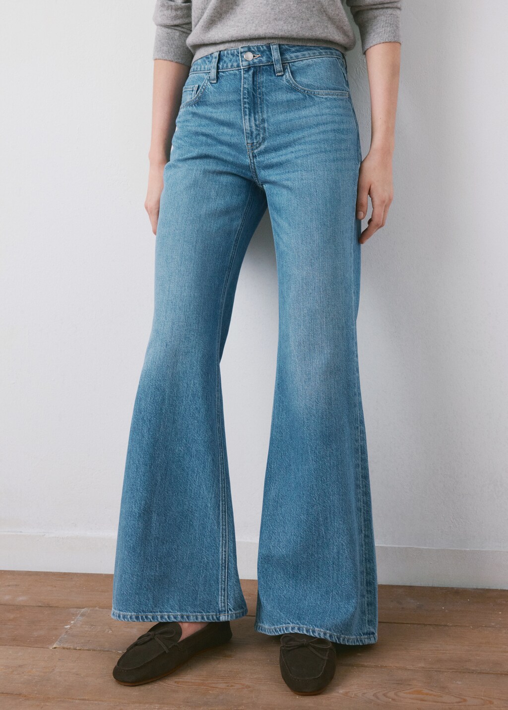 Mid-rise flared jeansCurrent price [29,000 XOF ]29,000 XOFSelect a colourMedium BlueSelect your size32Not available. I want it!34Not available. I want it!36Not available. I want it!38Not available. I want it!40Not available. I want it!4244Not available. I want it!46Not available. I want it!48Not available. I want it!50Not available. I want it!52Not available. I want it!54Not available. I want it!Size guideAddAdd to your wishlistSee lookFree delivery to storeSee availability in storeDescriptionDenim-style cotton fabric. Flared design. Long design. Flare design. Mid-rise. Belt loops. Five pockets. Button and zip fastening. Available Plus.See detailsItem qualitiesRecycled cottonAt least 20%This fibre is obtained from pre- and post-consumer textile waste that is transformed into new fabrics.Share