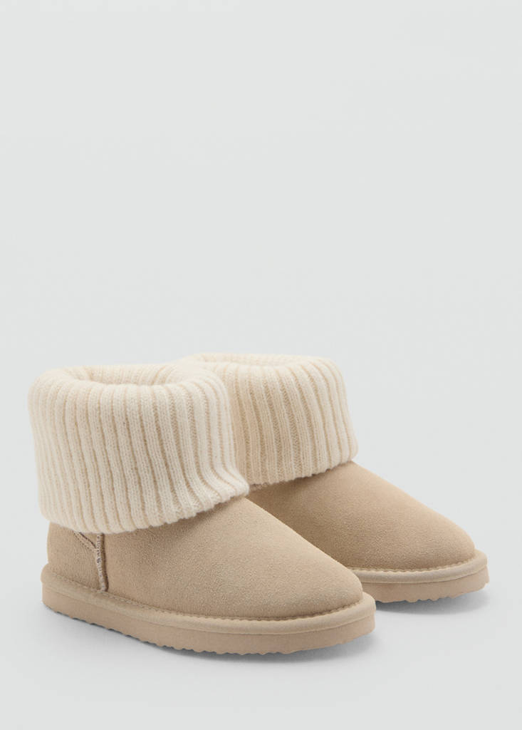 Cuir de bovin. Suède. Bout rond. Intérieur en imitation fourrure. Détail des points de côtes. Collection Noël
