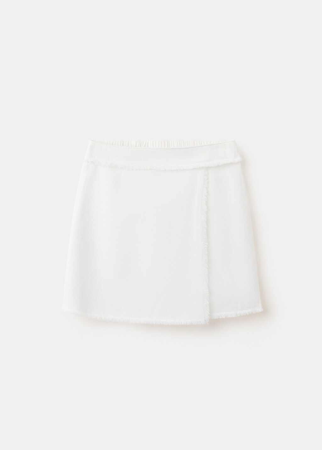 Confectionnée en tissu de coton style jean, ce vêtement présente une coupe droite et courte. La taille élastique offre du confort, tandis que les détails effilochés ajoutent une touche distinctive.