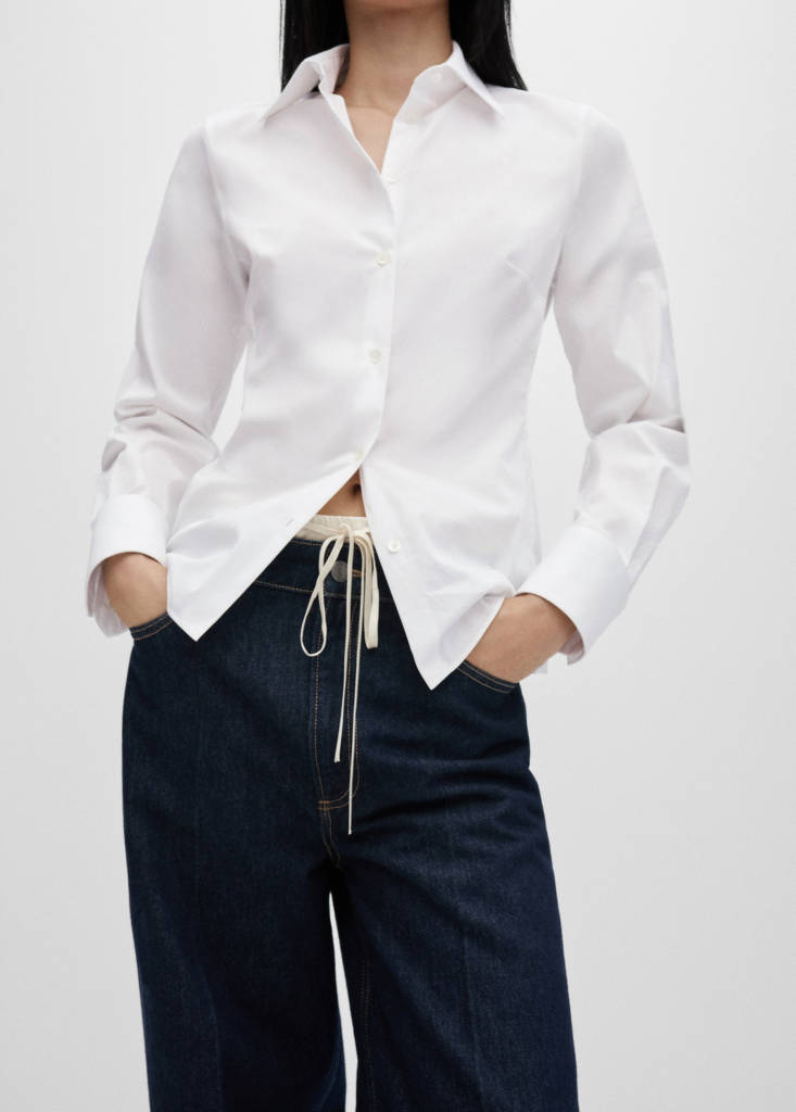 Poplin katoenen stof. Overhemdkraag. Lange mouwen met knoopmanchetten. Selection Collectie. Recht ontwerp. Voorste knoopsluiting. Getailleerd ontwerp