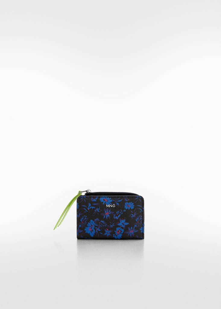 Middelgrote omvang, saffiaaneffect, bloemetjesdessin, drie vakken, ritssluiting, voering.