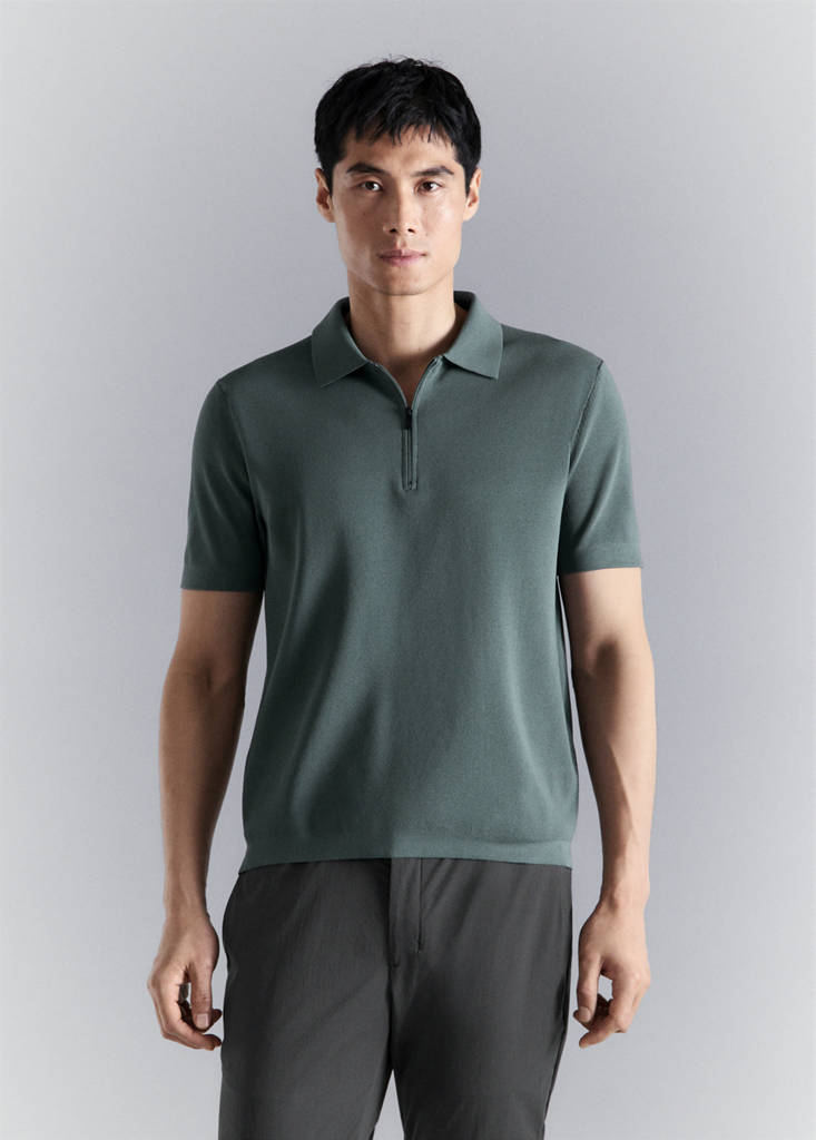 Performance-collectie. De kleur ijsgrijs is exclusief online verkrijgbaar. Warmteregulerend: Deze stof biedt een optimaal ademend vermogen zodat hij je op een stabiele temperatuur houdt. Comfort Stretch: elastische stof die voor extra comfort zorgt. Fijn breisel. Straight-fit. Polokraag met ritssluiting. Geribde afwerkingen van hals en mouwen. Korte mouw. Rechte zoom met zijsplitten.