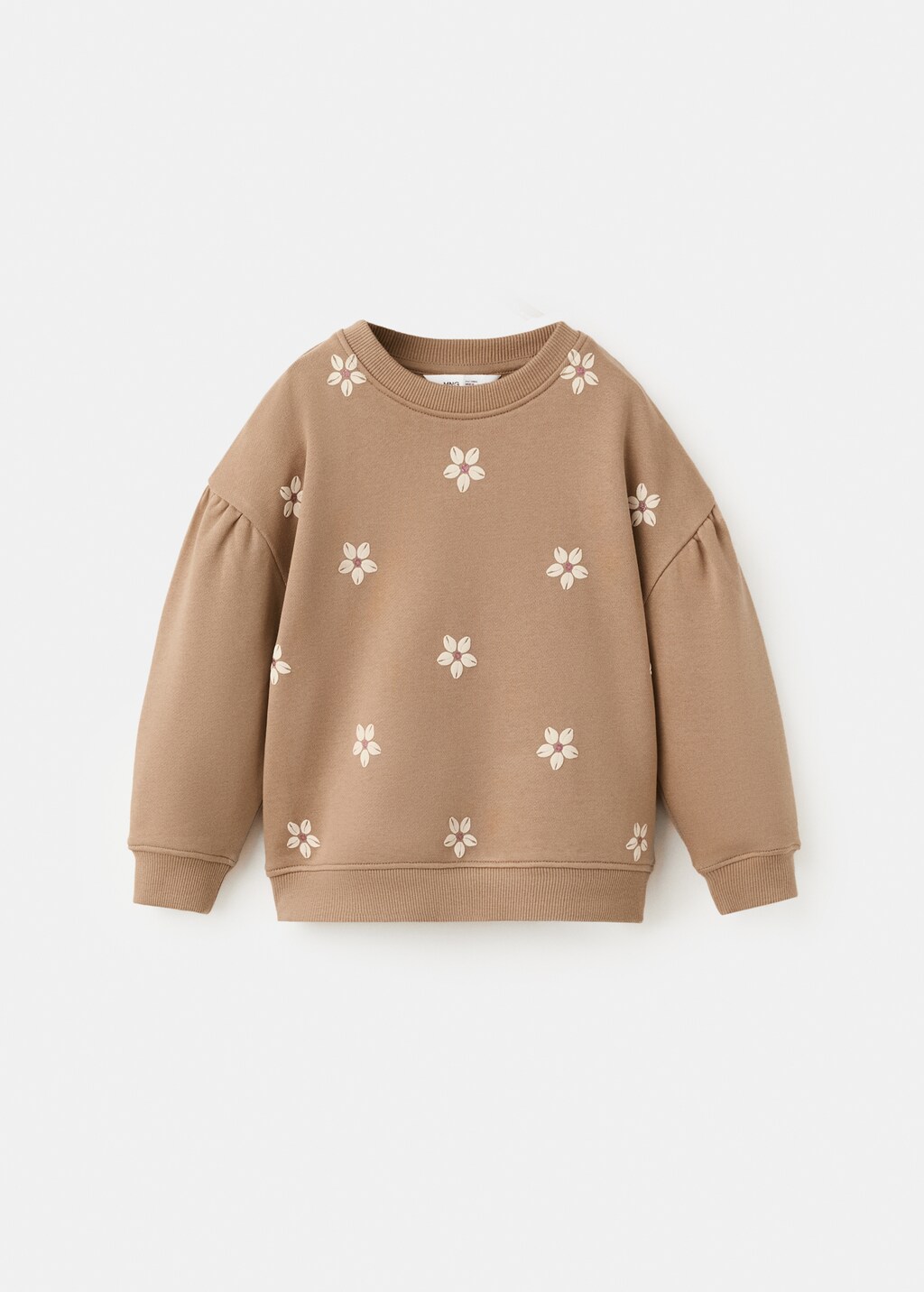 Tejido 100% algodón. Diseño recto. Diseño estampado floral. Cuello redondo. Manga larga. Cuello, puños y bajo en canalé. Detalles de flores.