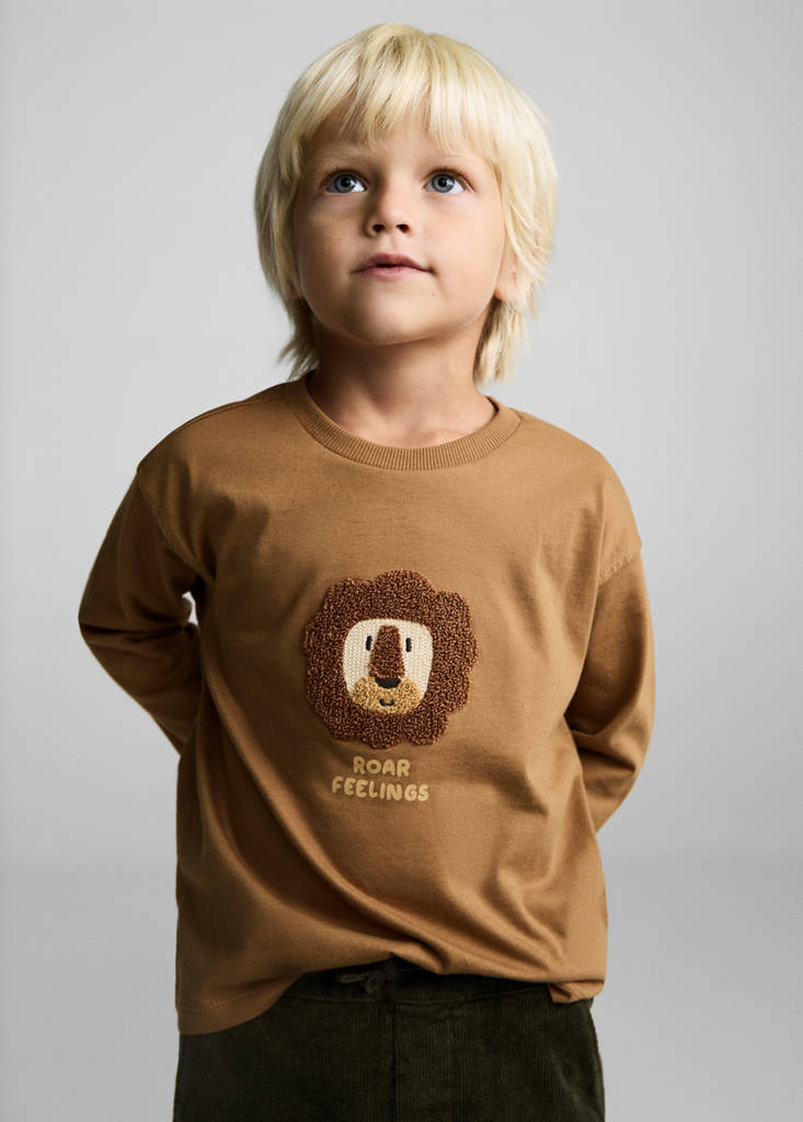 100% algodón. Diseño recto. Estampado león. Estampado con relieve. Cuello redondo. Manga larga. Sin cierre