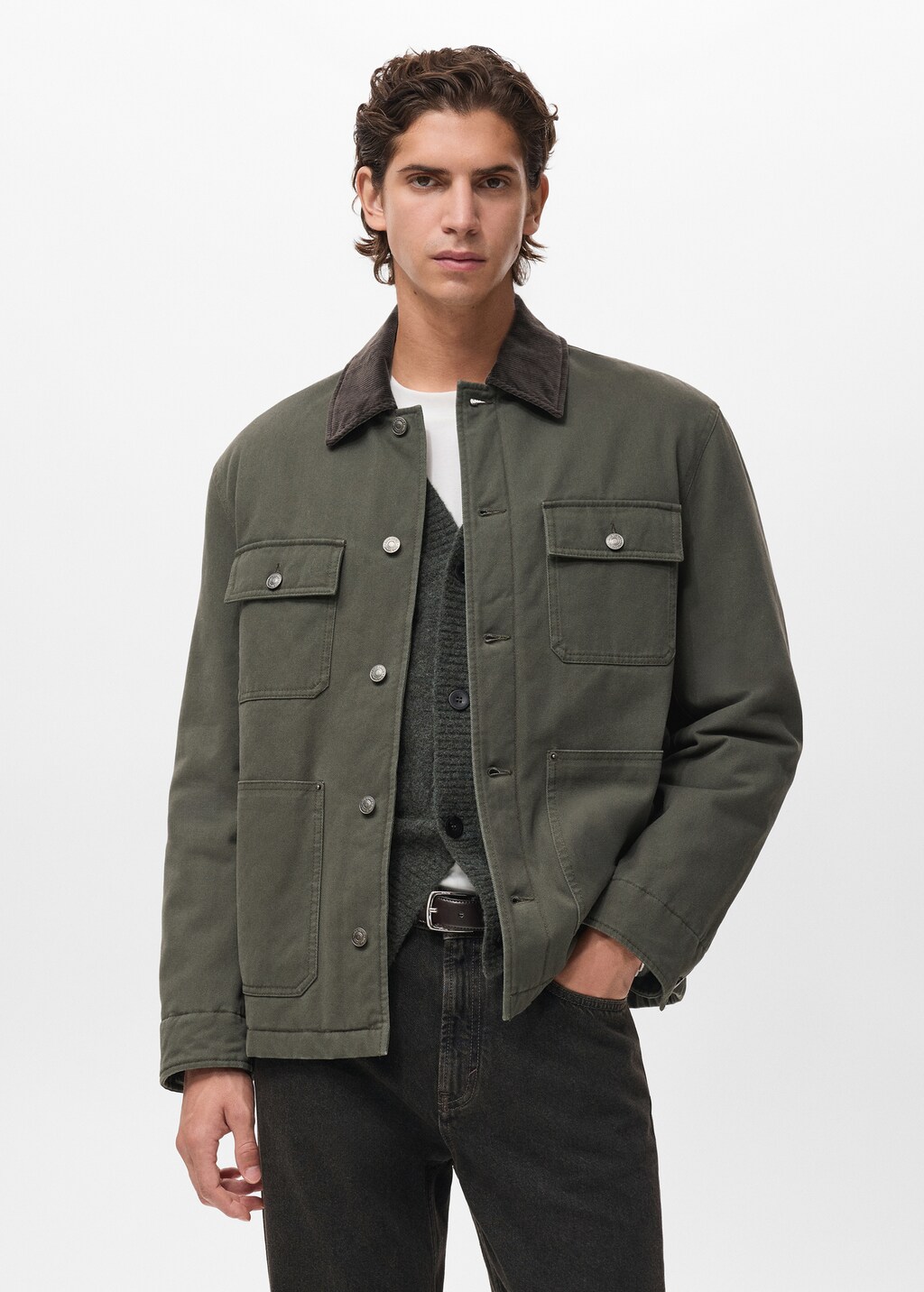 Silueta recta. Tejido de algodón. Cuello camisero de pana. Dos bolsillos de parche solapa y botón en el pecho. Dos bolsillos de solapa en la parte frontal. Forro interior. Bolsillo interior. Manga larga con puños abotonados.