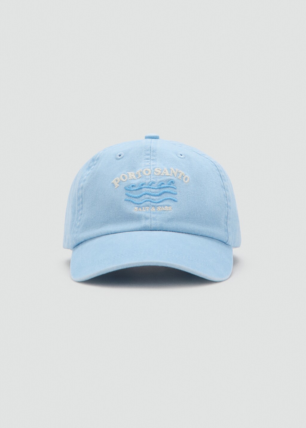 Tejido 100% algodón. Estilo gorra. Texto bordado. Cierre metálico ajustable.