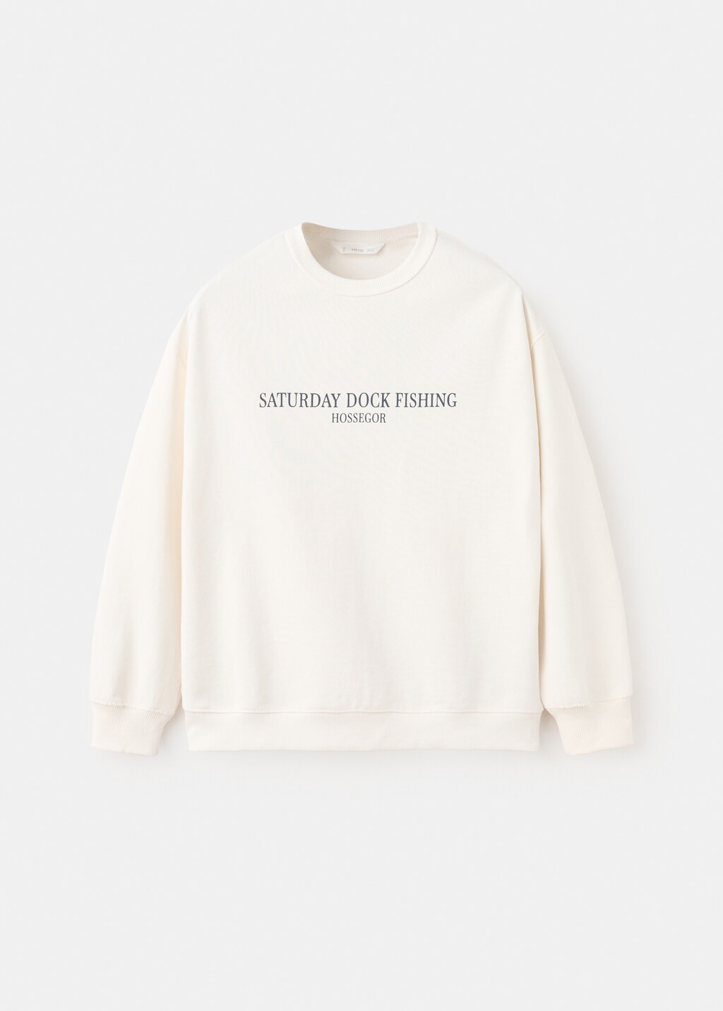 Confeccionada en tejido 100% algodón, esta prenda presenta un diseño recto con cuello redondo y manga larga. Los detalles en canalé se encuentran en el cuello, puños y bajo. Incluye texto estampado en el pecho y diseño en la parte posterior