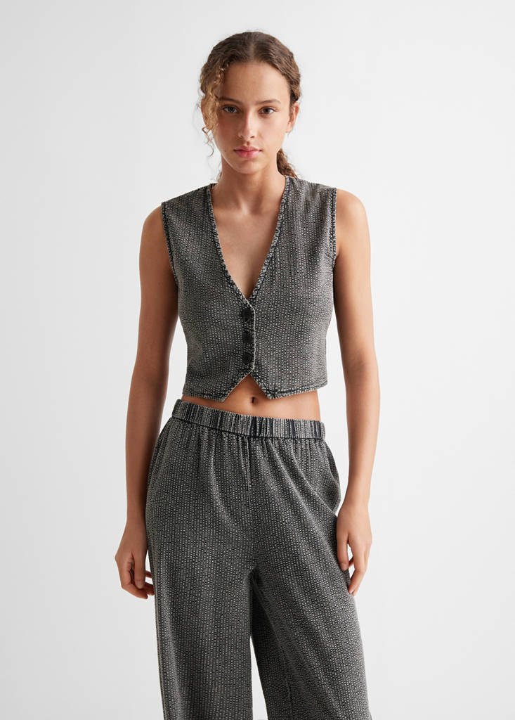 100% algodón. Tejido con textura. Diseño wideleg. Cintura con goma elástica. Sin cierre