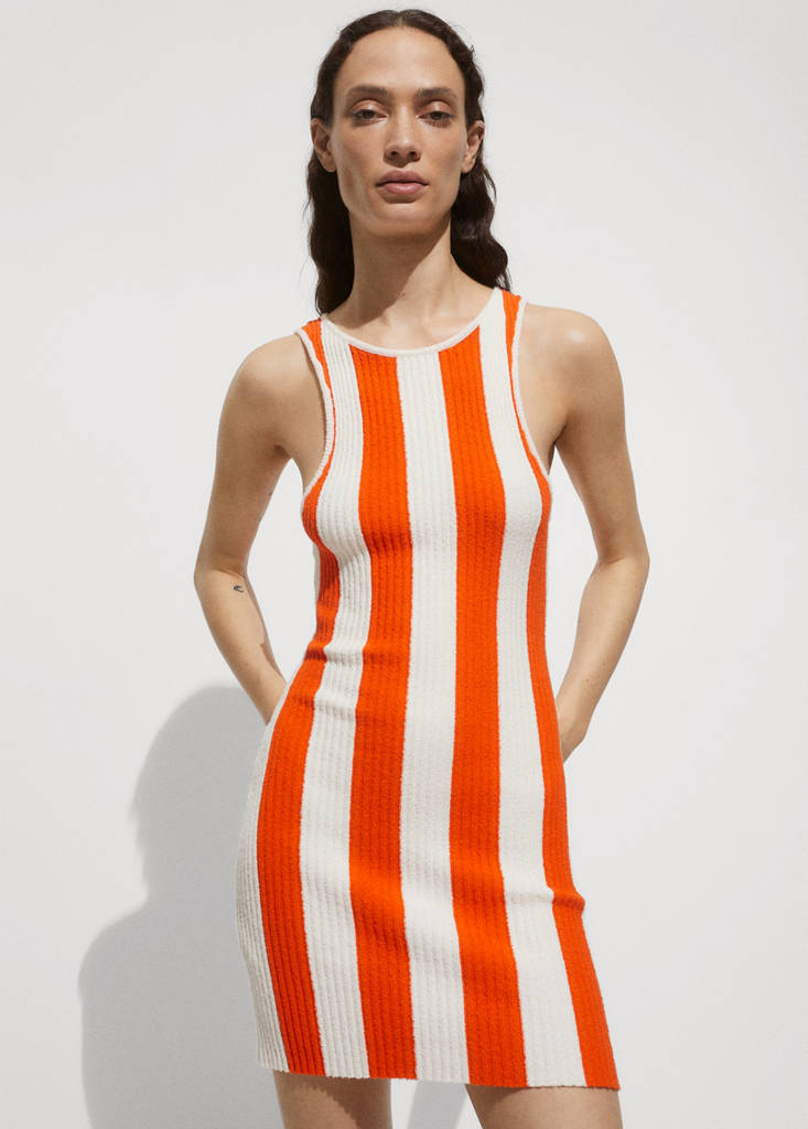 Ribbed knitted dress with stripes