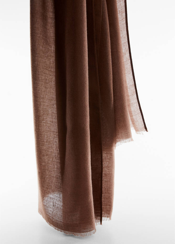 Flowy scarfCurrent price [€ 349.99 ]€ 349.99Select a colourBrownSelect your sizeOne sizeAdd to WishlistSee lookFree delivery to storeFrayed hem190.0x90.0 cmDetails, composition and careStore availability