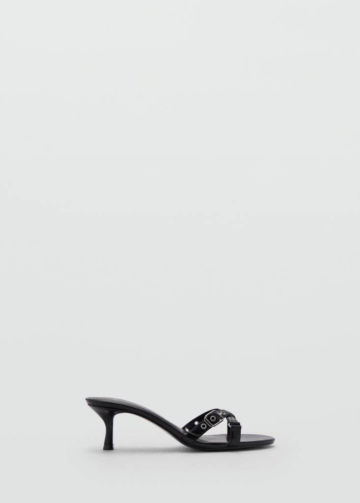 Straps design. Die-cut design. Front opening. Sling back. Kitten heel. 5 cm heel