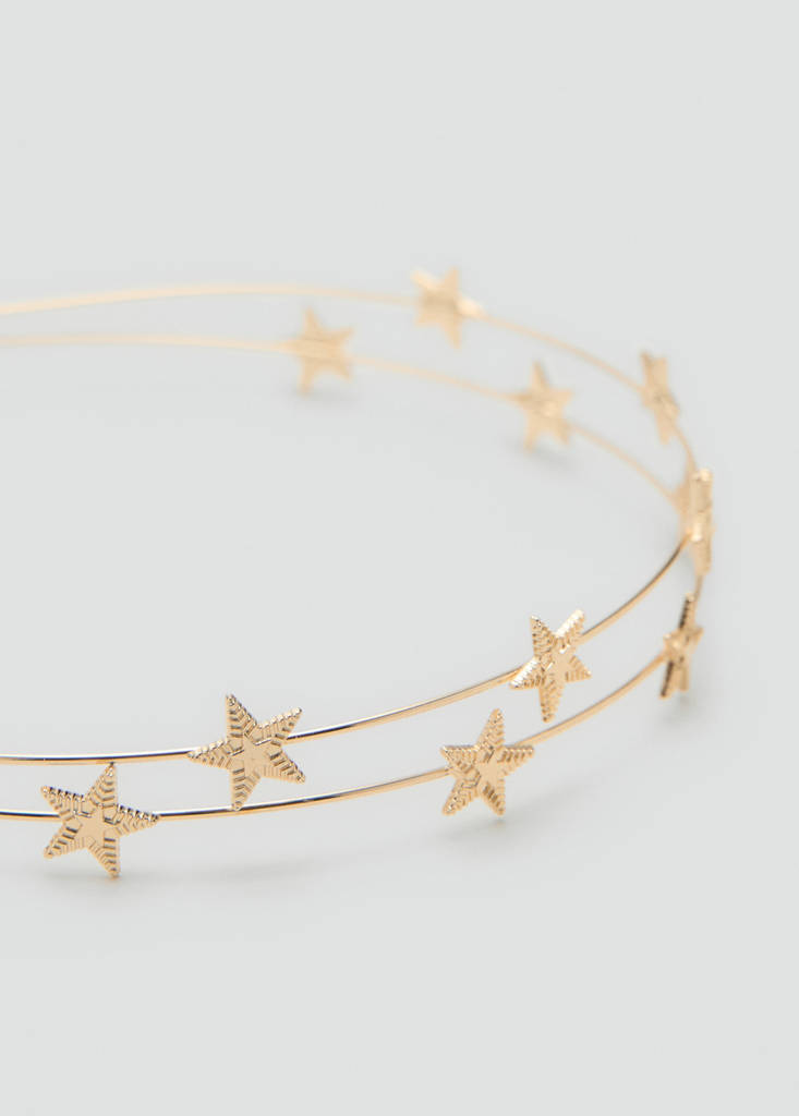 Stars hairbandCurrent price [US$ 15.99 ]US$ 15.99Select a colourGoldSelect your sizeOne sizeNot available. I want it!Notify meAdd to WishlistSee lookFree delivery to storeMetallic design. Star pattern. HeadbandDetails, composition and careStore availability