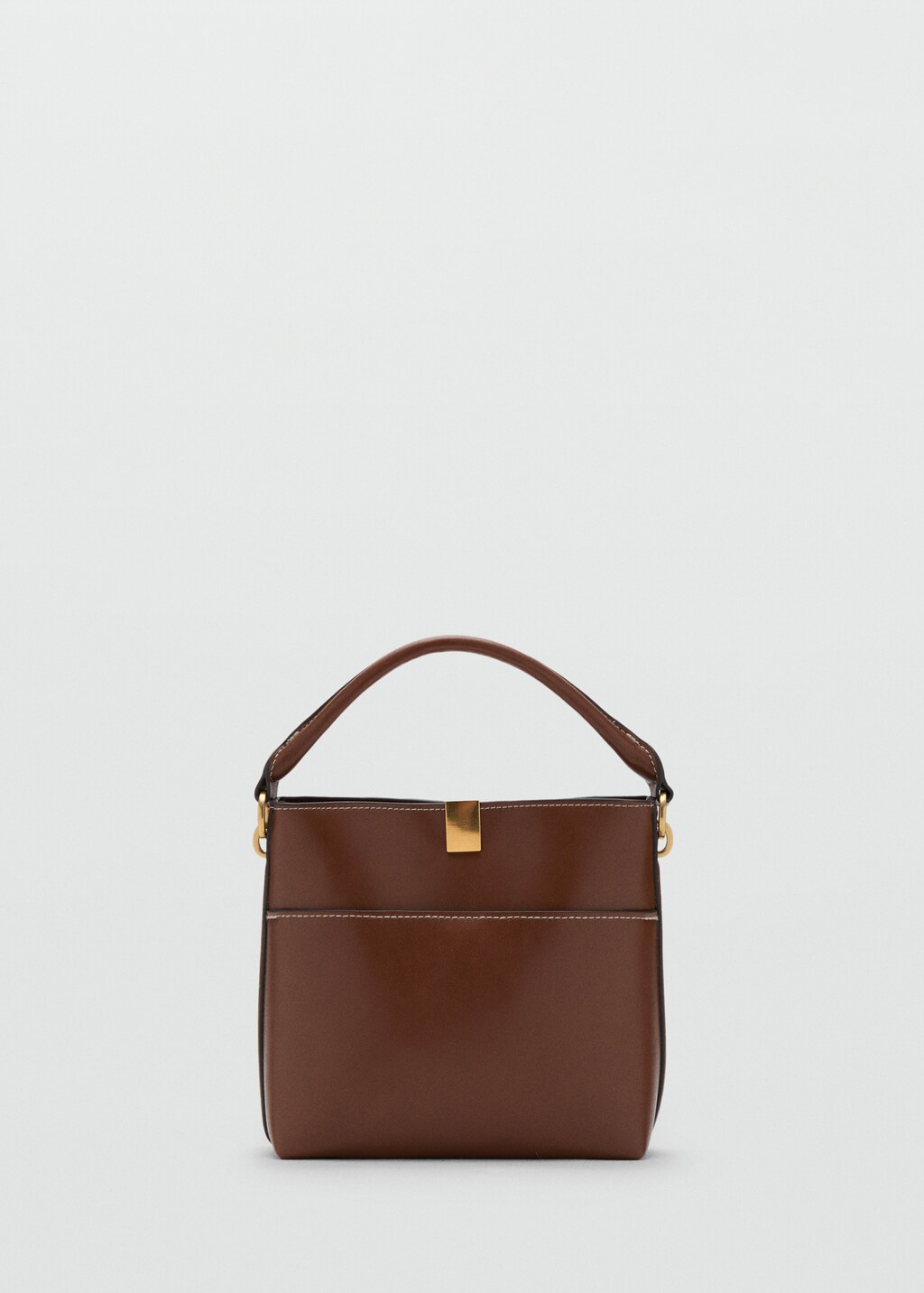 Small size. Bucket design. Short handle. Adjustable and detachable long strap. Magnetic button closure. Inner lining.