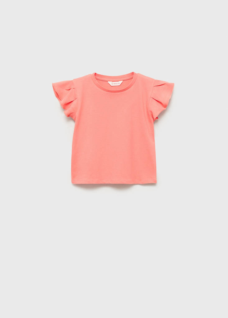 100 % coton. Coupe droite. Col rond. Manche courte avec volant