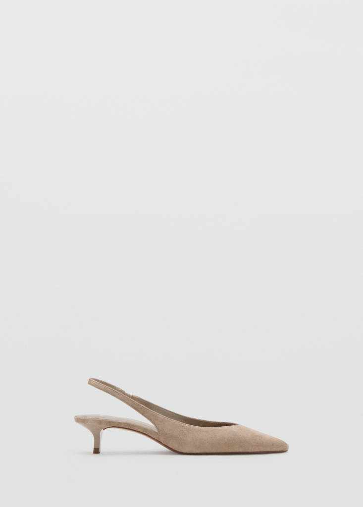 100 % cuir de chèvre. Daim. À pointe. Talon kitten. À bride arrière. Talon de 4,5 cm