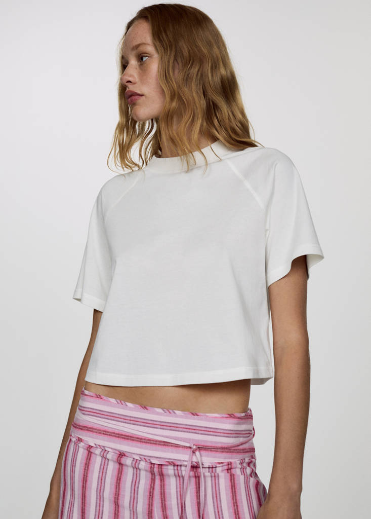 Coupe droite. Col rond. Manches courtes. Tissu 100 % coton