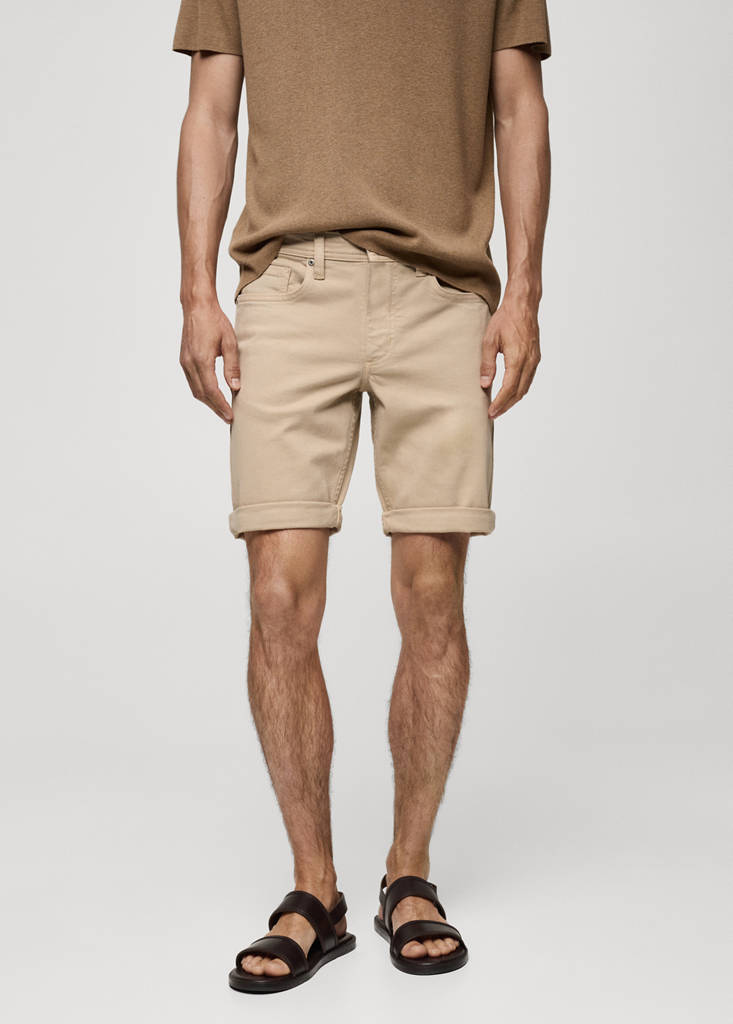 Slim fit. Tissu en coton de style jean. Passants de ceinture. Fermeture éclair et bouton. Deux poches latérales. Poche gousset. Deux poches plaquées à l'arrière. Ourlet avec revers