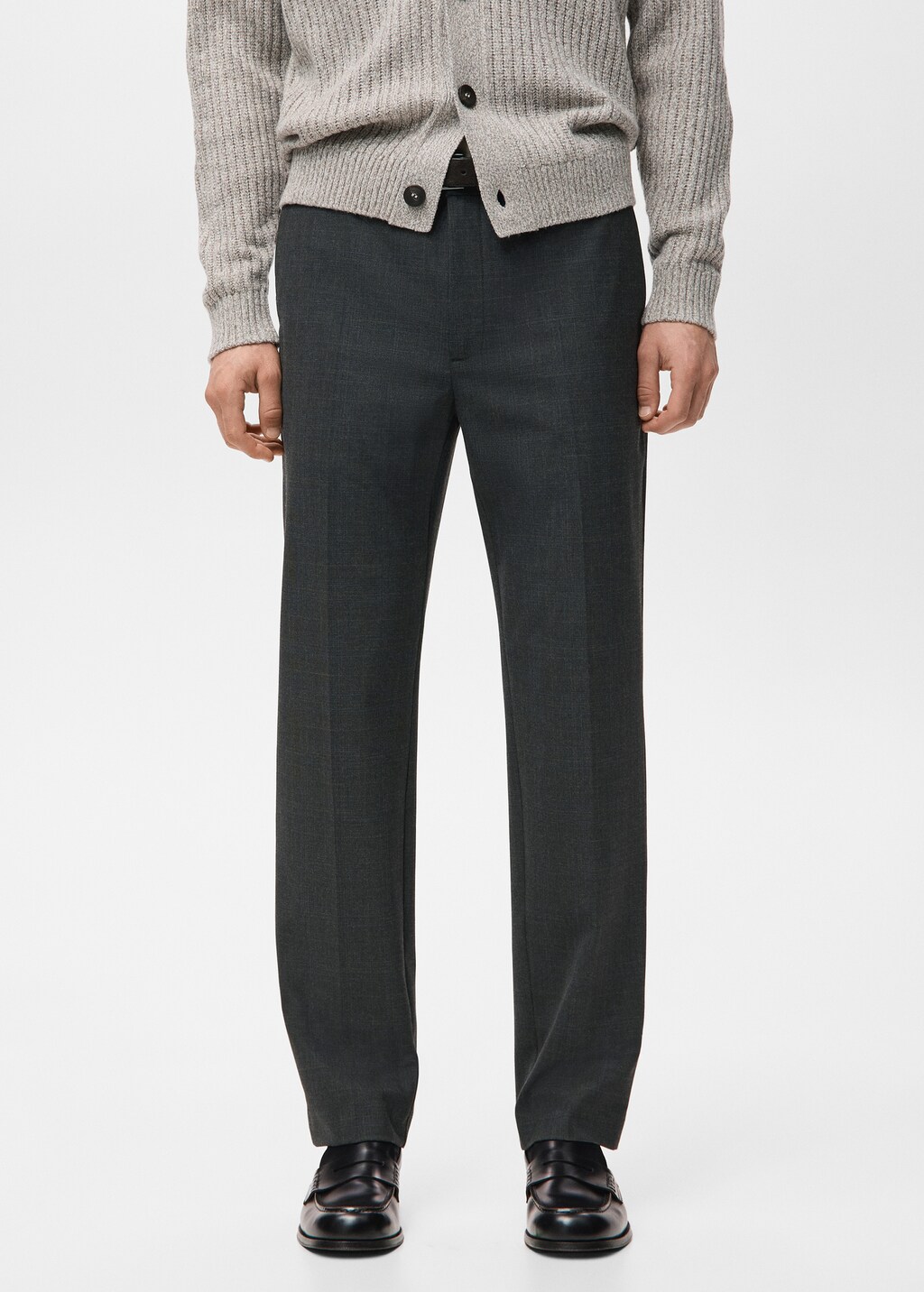 Coupe régulière. Tissu de coton et viscose mélangés. Pli marqué au fer devant et derrière. Deux poches latérales. Deux poches passepoilées avec bouton à l'arrière. Fermeture Éclair à l’avant. Passants pour ceinture.