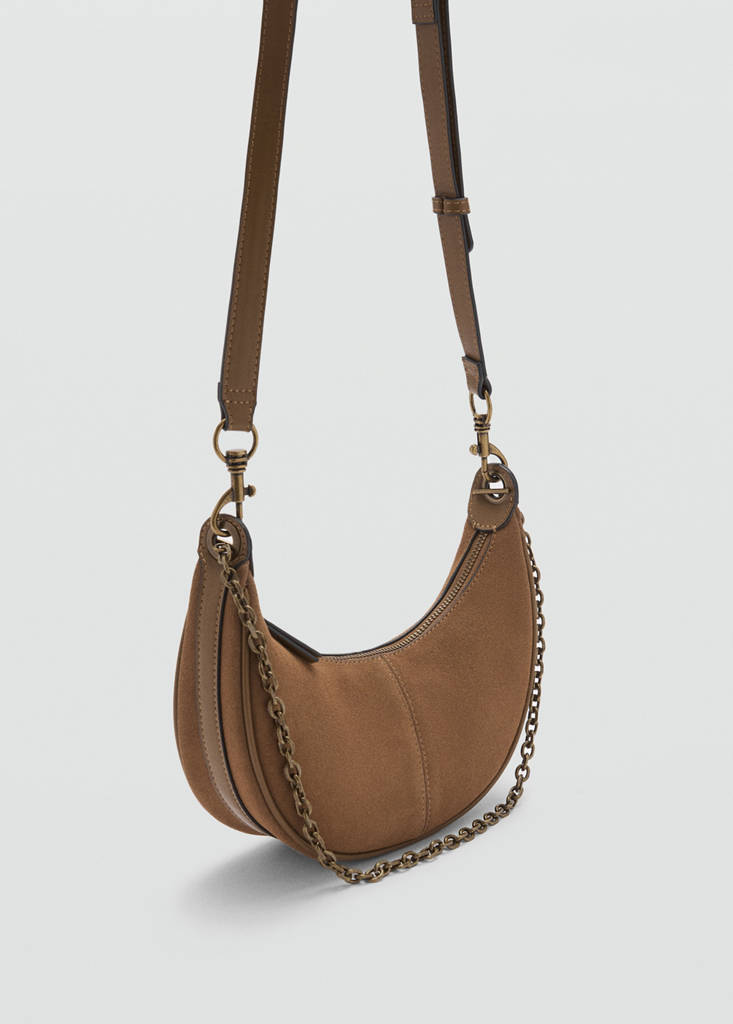 Design ovale. Chaîne amovible. Bandoulière réglable. Fermeture à zip. Cuir de bovin
