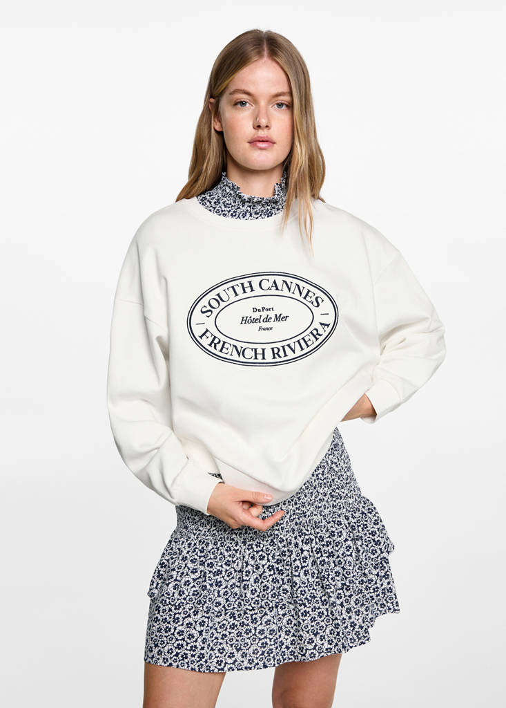 100 % coton. Taille haute. Coupe droite. Détail brodé. Manche longue. Col rond