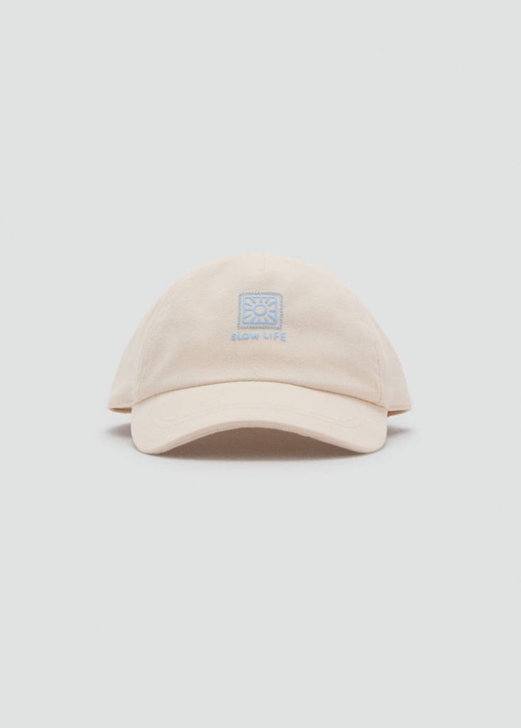 100% Coton. Avec visière. Dessin en relief. Sans fermeture. Fronces élastiques. Détail brodé